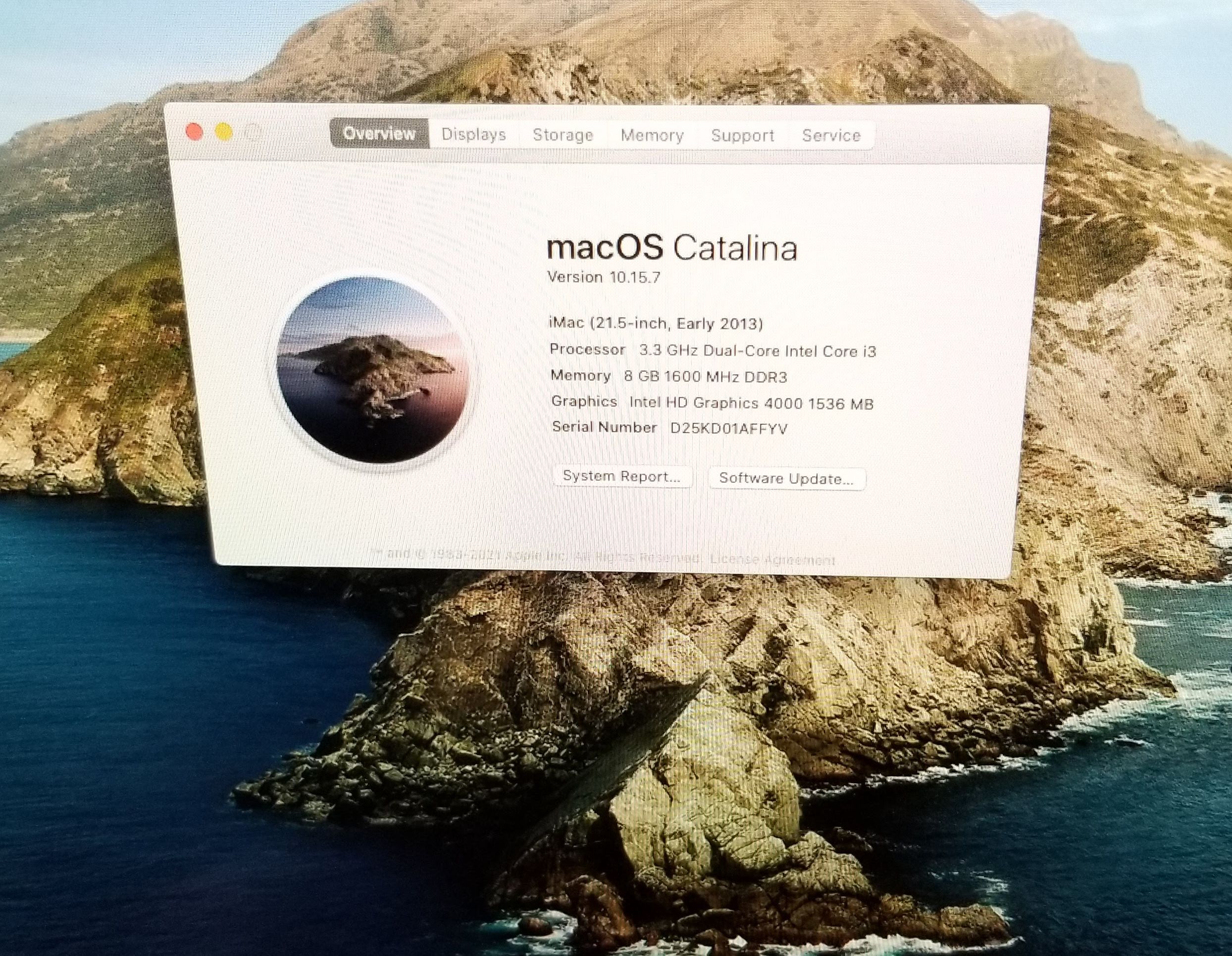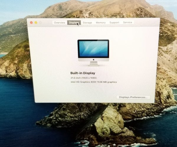 Apple iMac A1418 21.5″ Core i3 3.3GHz, 8GB RAM, 2TB HDD, Intel HD Graphics 4000 1.5GB, OS Catalina. Installed New LCD Screen & replacement HDD