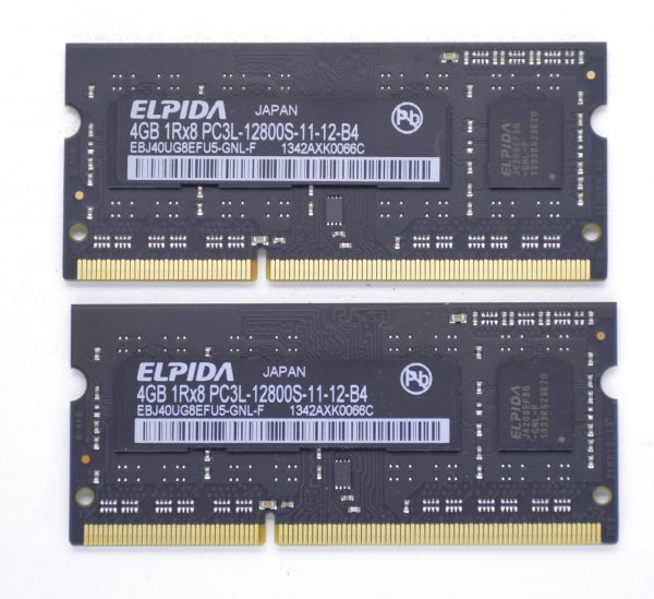 Elpida 8GB (2x4GB) 1Rx8 PC3L-12800S 1600MHz Apple RAM Memory EBJ40UG8EFU5-GNL-F. Removed from iMac A1418 21.5″