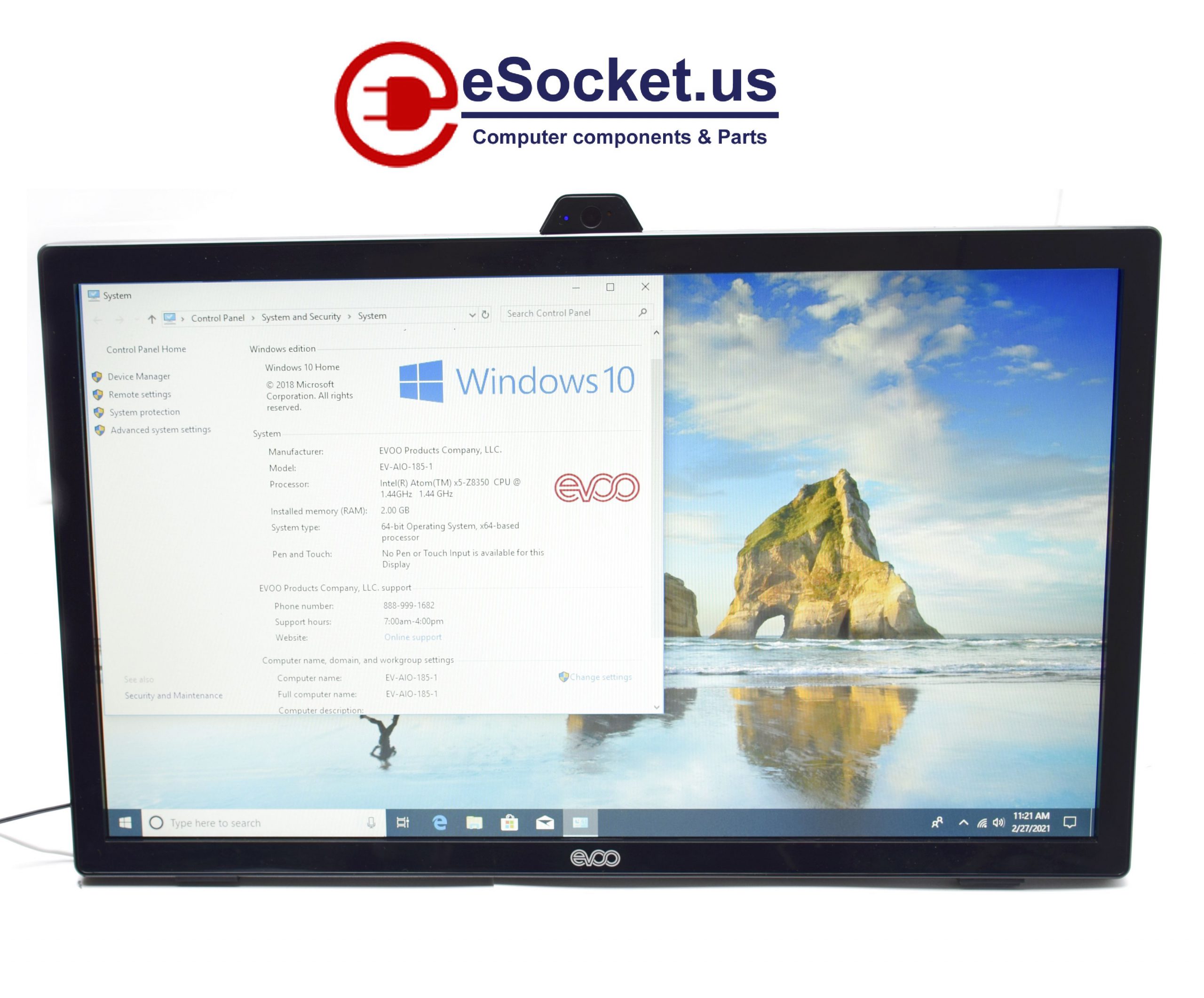 EVOO 2EV-AIO-185-1-PK 18.5″ HD x5-Z8350 1.44GHz 2GB RAM 32GB eMMC Win 10 Home. Power Supply, Original box, Keyboard & Mouse not included. 100% guaranteed working. Photos are real.