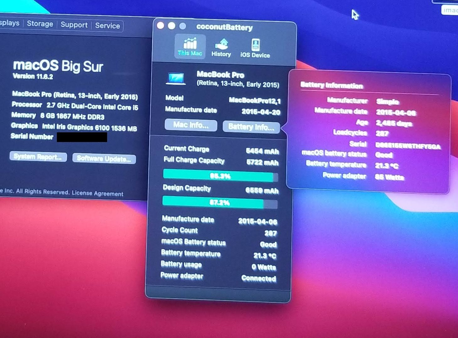 All keys & Trackpad TESTED. Cycle Load 287, Battery Hold 87%