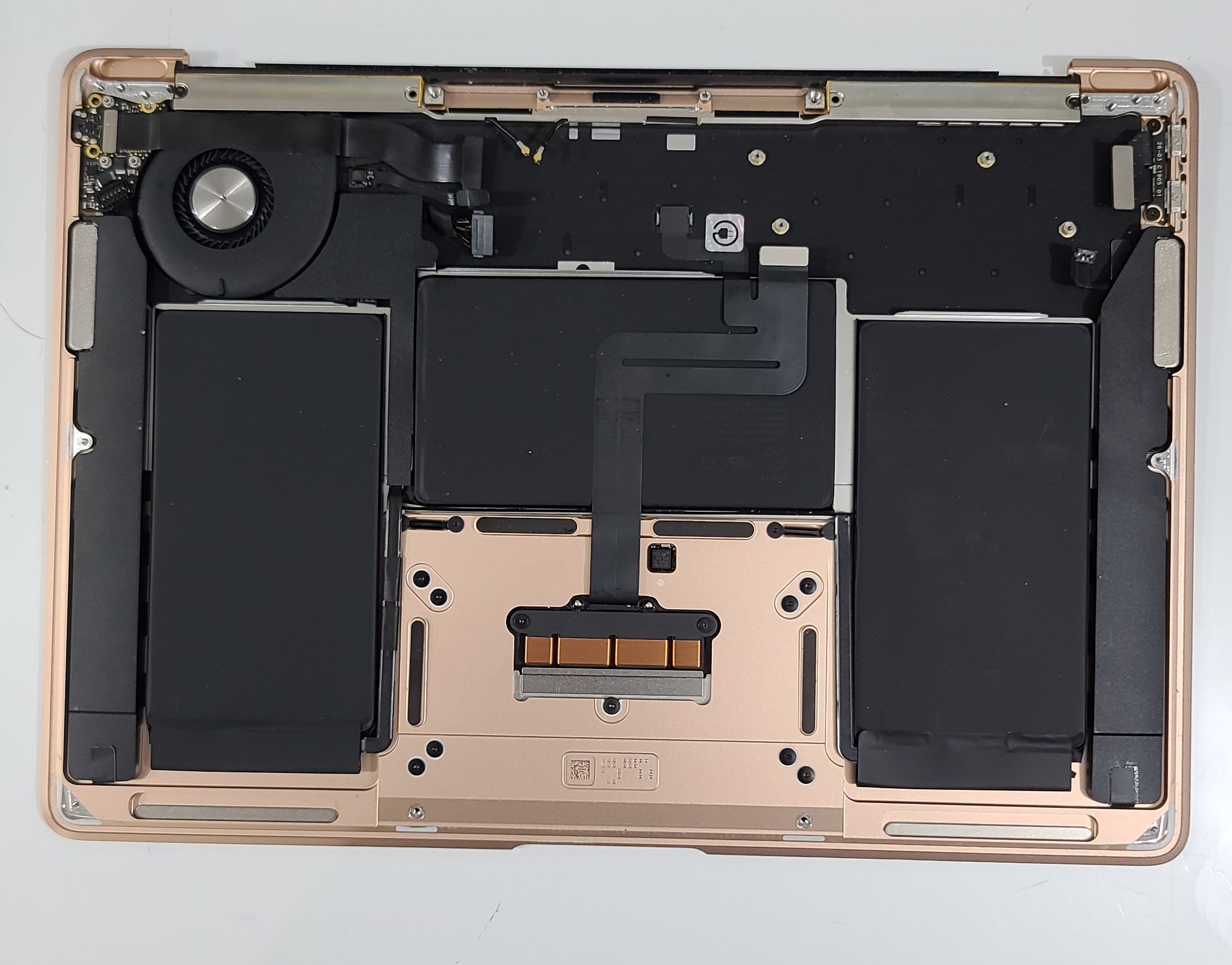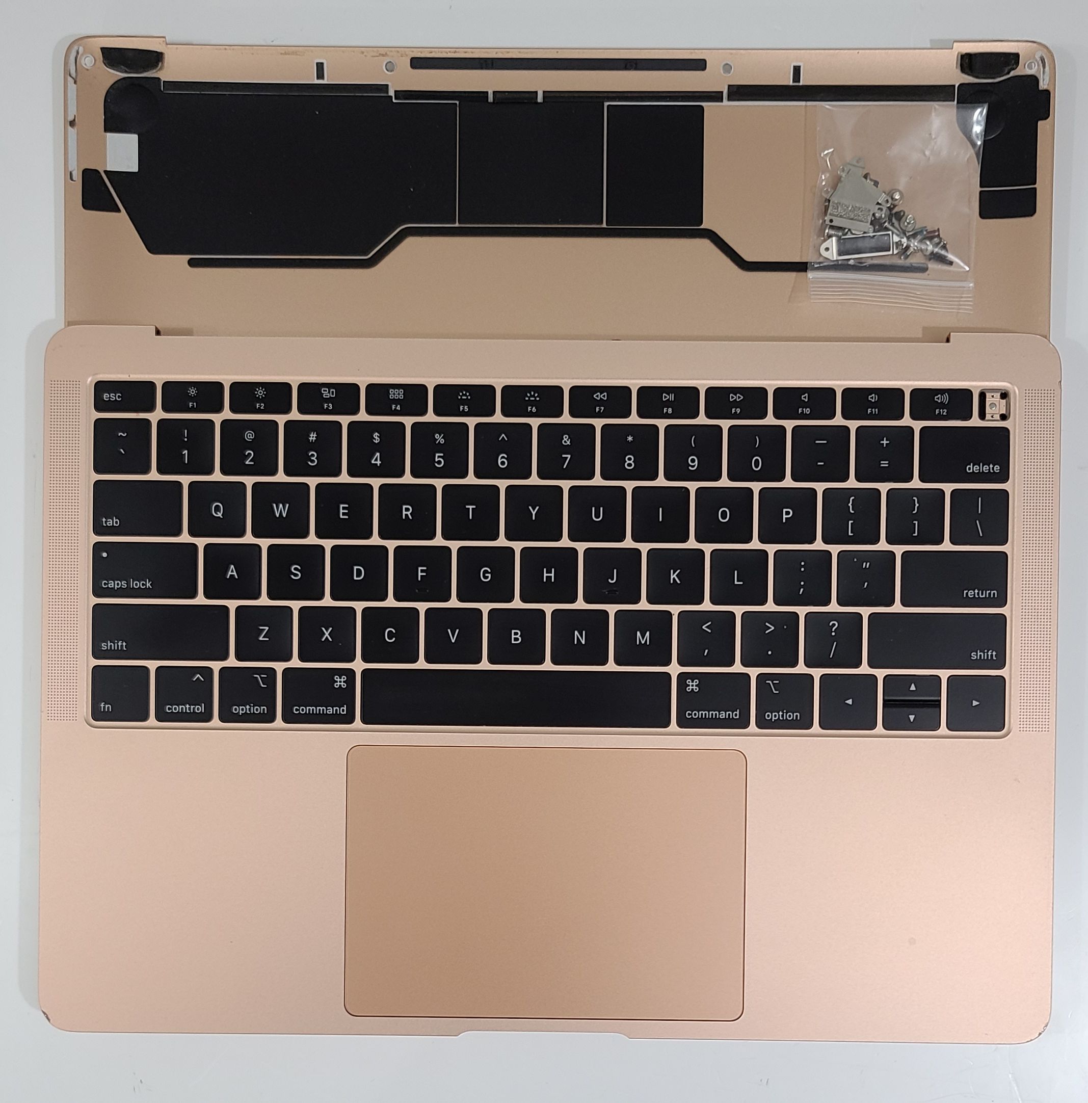 2018 2019 MacBook Air 13” A1932 GOLD Top Case + Keyboard +Touchpad + Fan + Speakers + WIFI Antena + USB-C I/O Boards + Bottom cover + Screws. GRADE B( Scratches/Nicks/Dings/Scuffs). Touch ID not included