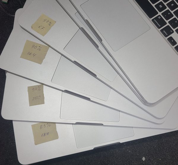 Top Case Grade A/B (Minor scratches, scuffs, nicks). Bottom Cover Grade B/B-/C+(scratches, scuffs, minor dents). Battery very good capacity.