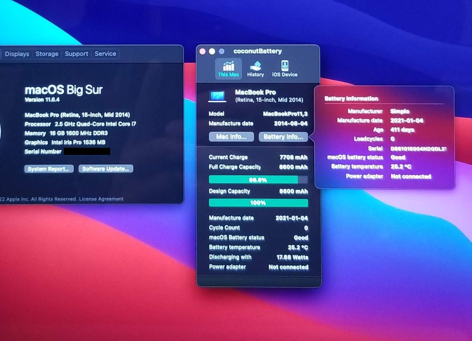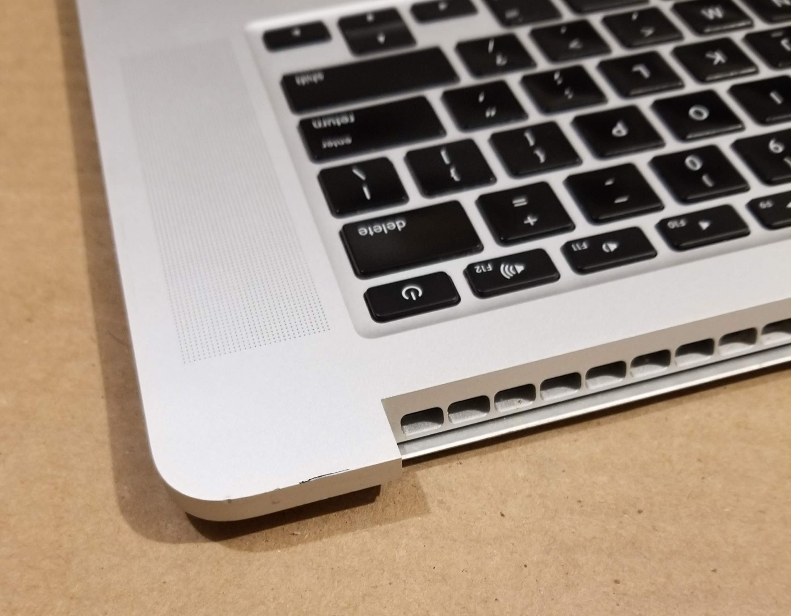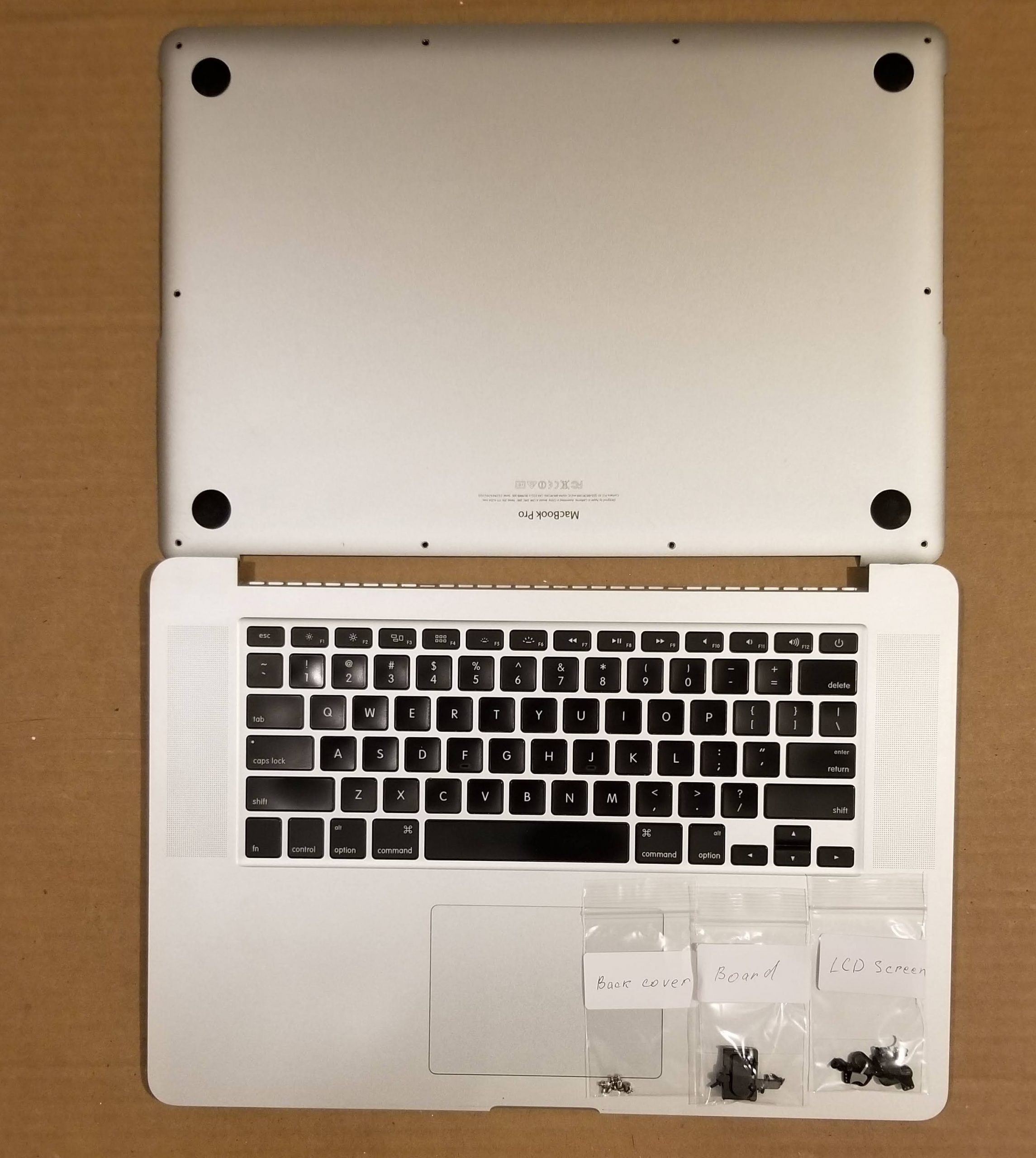 Grade B Original Apple MacBook Pro 15″ A1398 Late 2013 Mid 2014 Top Case Keyboard, New Battery A1582 (Cycle Load 0, Battery Hold 100%) , TrackPad, Speakers, Bottom Cover, Power & I/O Board, All Screws. Installed New Battery, All keys & Trackpad TESTED