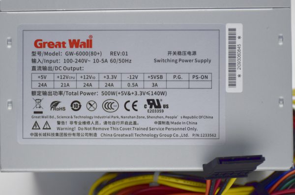 GREAT WALL GW-6000(80 PLUS) 500W Gaming Desktop Power Supply