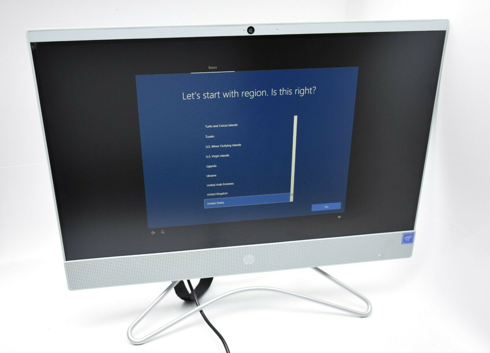 HP 22-C0073W All-in-one PC 8th Gen Intel G4900t 2.90 GHz 4GB RAM 1TB Win10 Home. The top corner of the screen is damaged during shipping (see photo). The computer was not in use. Power supply, keyboard and mouse are not included. AS IS, no return/refund.