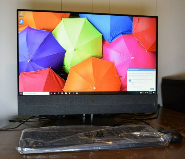 HP Pavilion 27-XA0013W AiO 27”, AMD Ryzen 5 2600H, AMD Radeon Vega 8 grapfics, 8Gb, 1TB HDD, Win 10 Home. There is a dent on the upper corner of the case upon delivery (see photo). Included: HP Pavilion AiO 27-XA0013W, Wired mouse and keyboard, power supply. Original box not included/