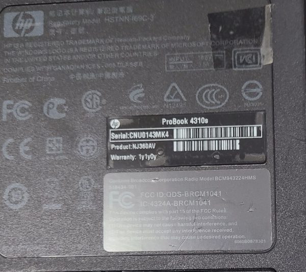 HP ProBook 4310s Laptop 1.80GHz CPU 8GB RAM 1TB HDD. Power Supply not included