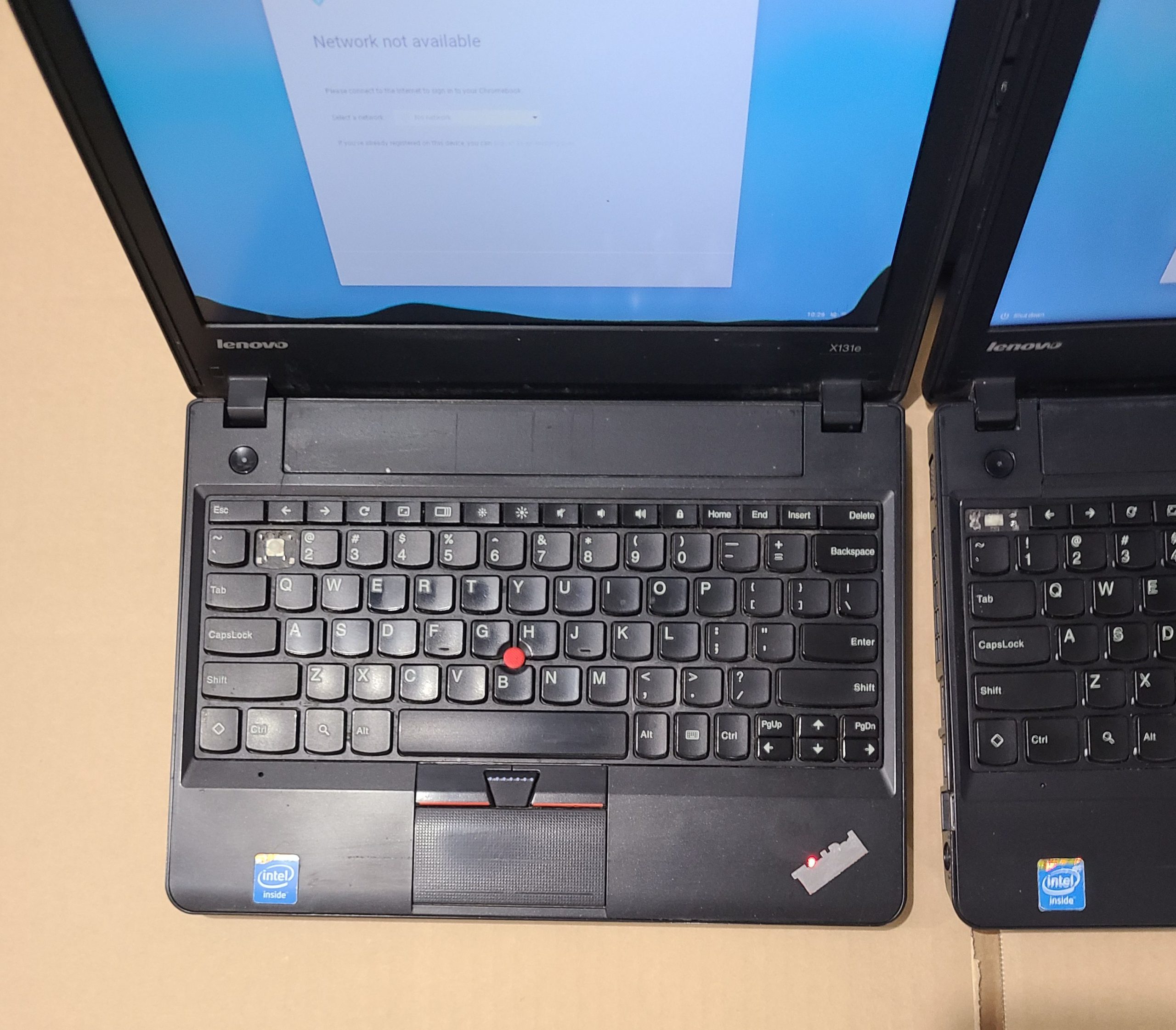Lot of 6 Lenovo ThinkPad x131e Chromebook 11.6 Intel Celeron 1.5GHz 4GB RAM 16GB SSD. All Chromebooks turn on, no other tests done. Keyboards missing keys, scuff, scratches, See Photo. Power Adapter not included. AS IS NO Return/Refund