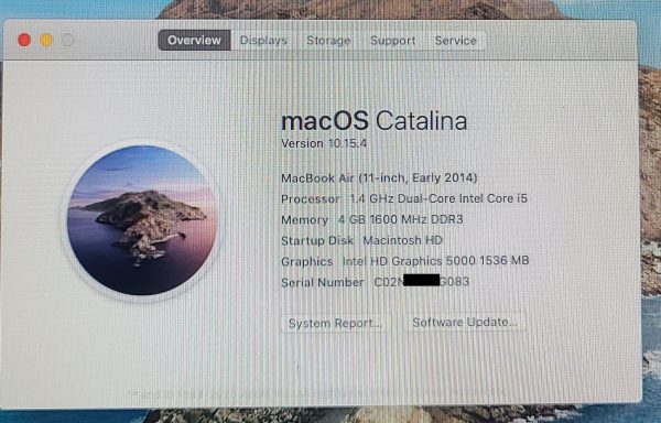 – MacBookAir6,1 Early 2014: EMC 2631 – MD711LL/B (1.4 GHz Core i5)