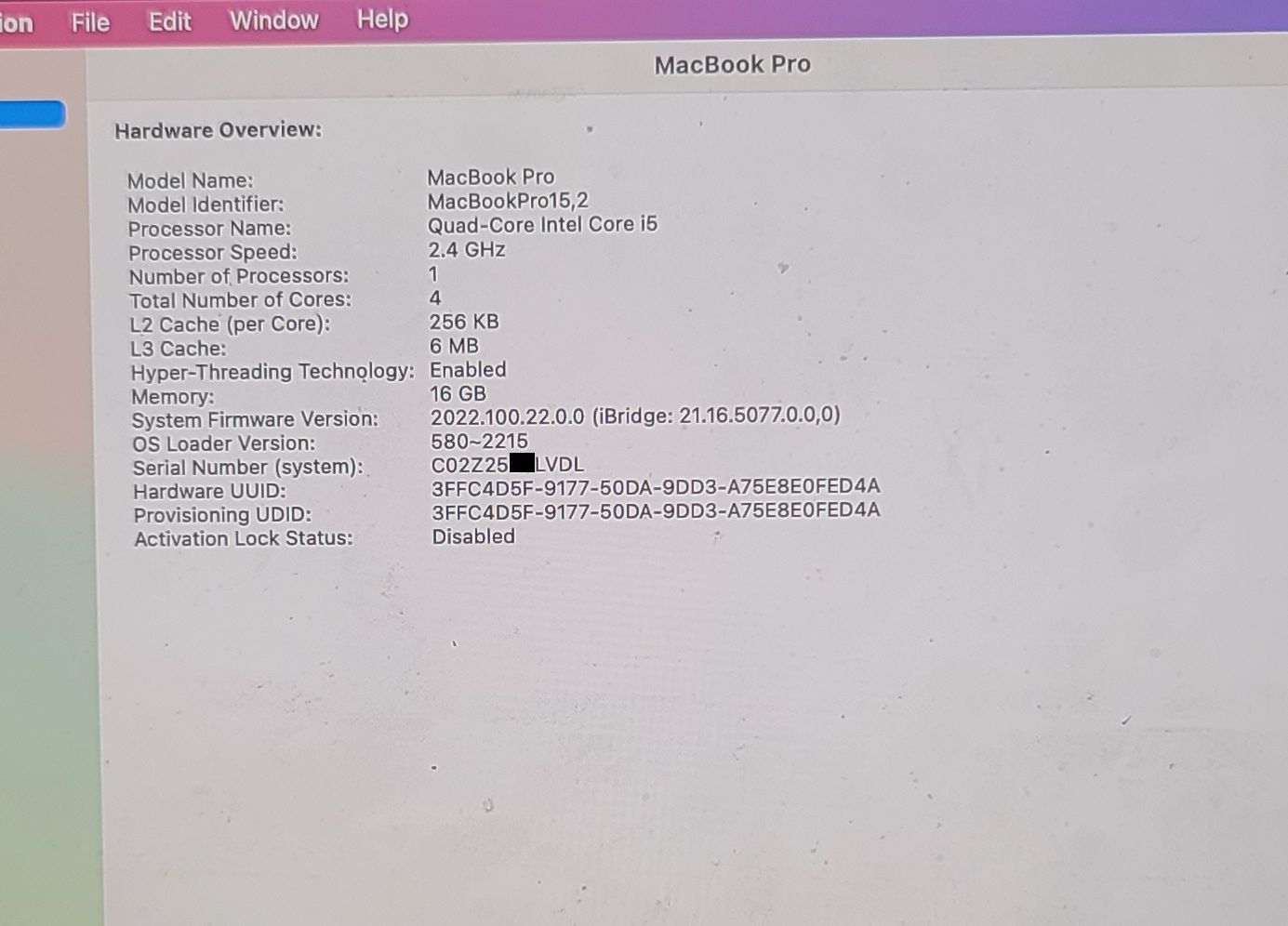 - 📌 MacBook Pro “Core i5” 2.4GHz (I5-8279U) – MV962LL/A