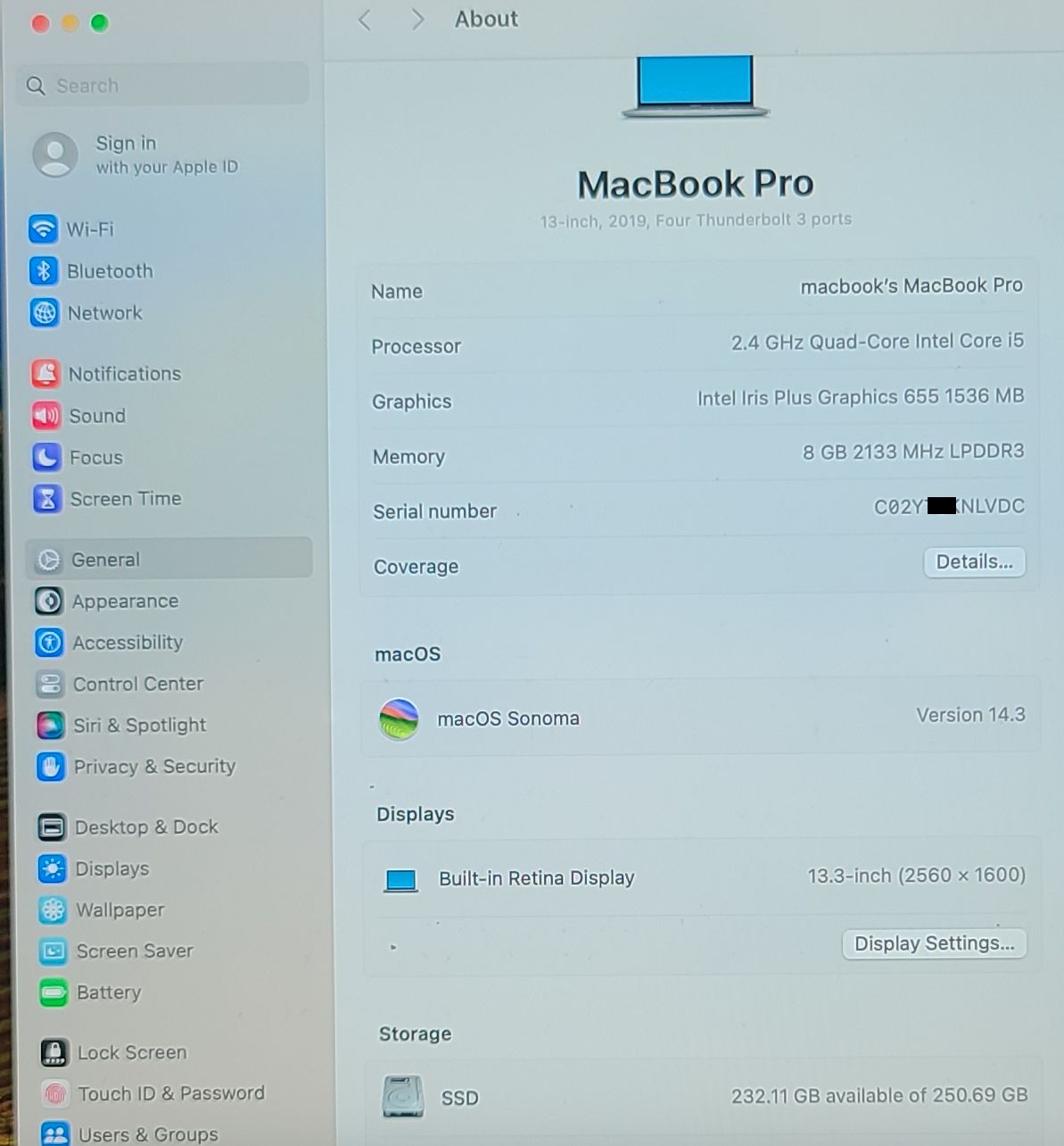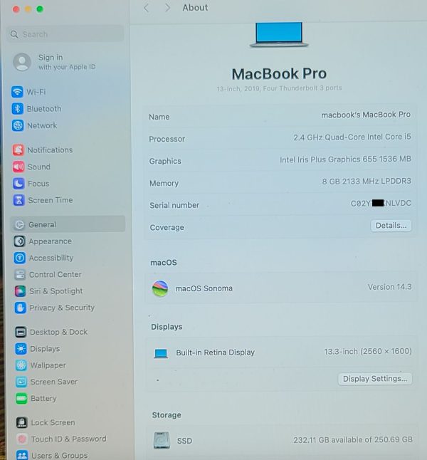 - 📌 MacBook Pro “Core i5” 2.3GHz (I5-8259U) – MR9Q2LL/A
