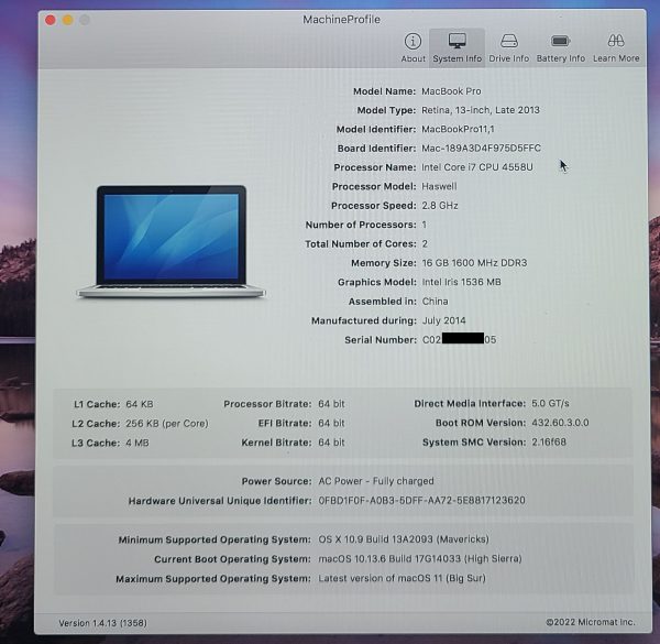 MacBook Pro 13″ 2013/2014 A1502 i7 2.8GHz 16GB Logic Board 820-3476-A TESTED