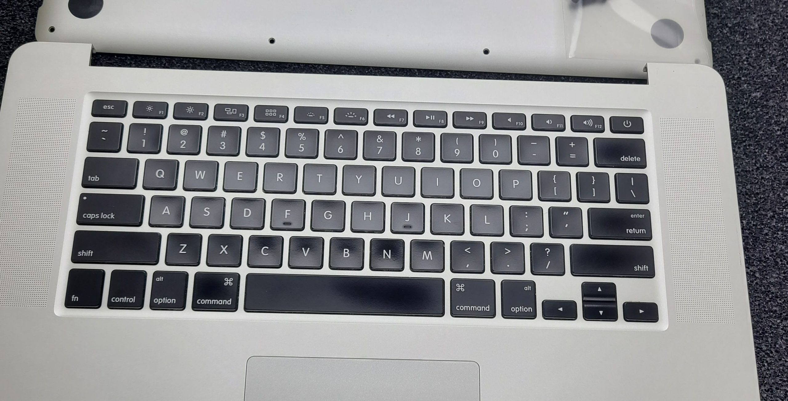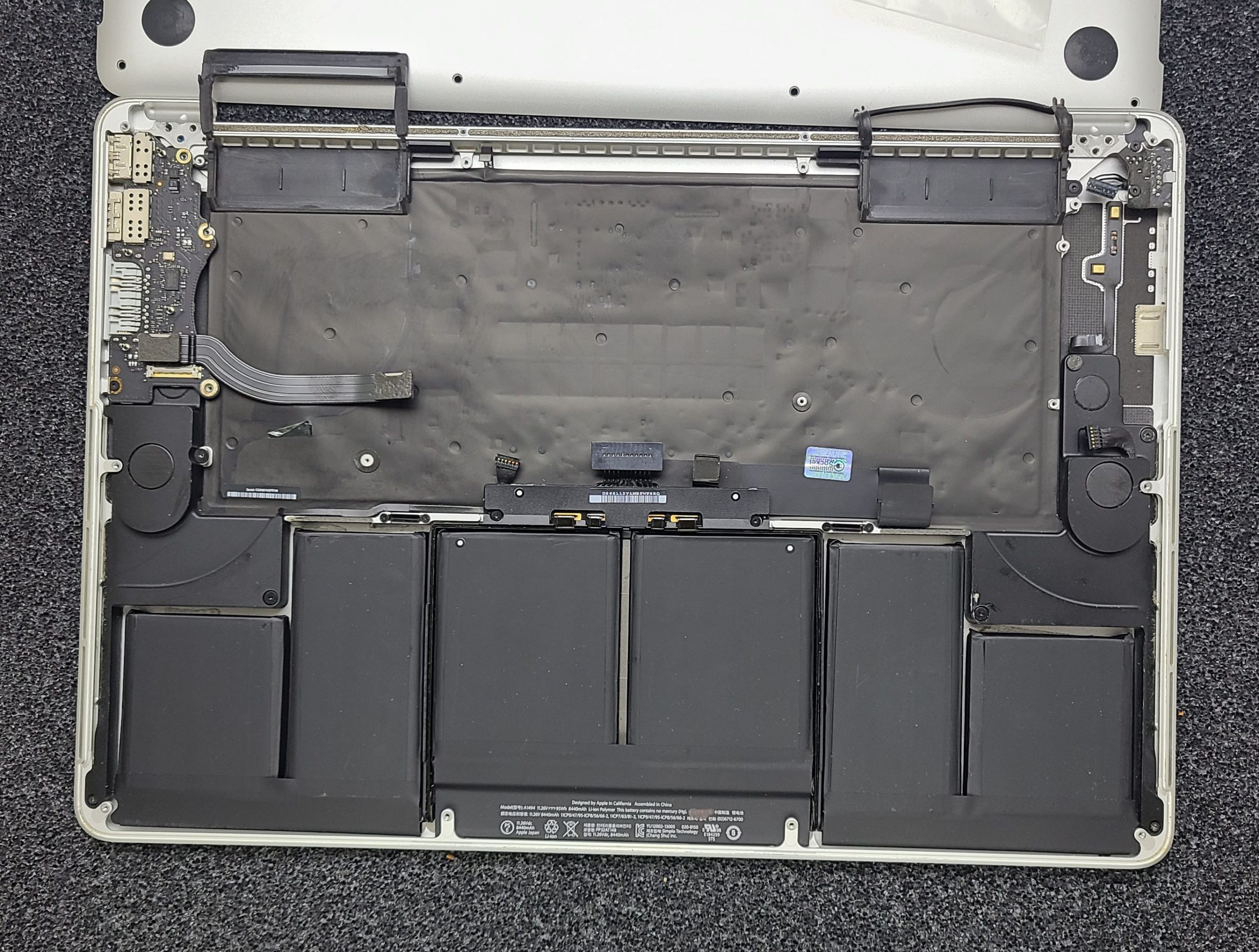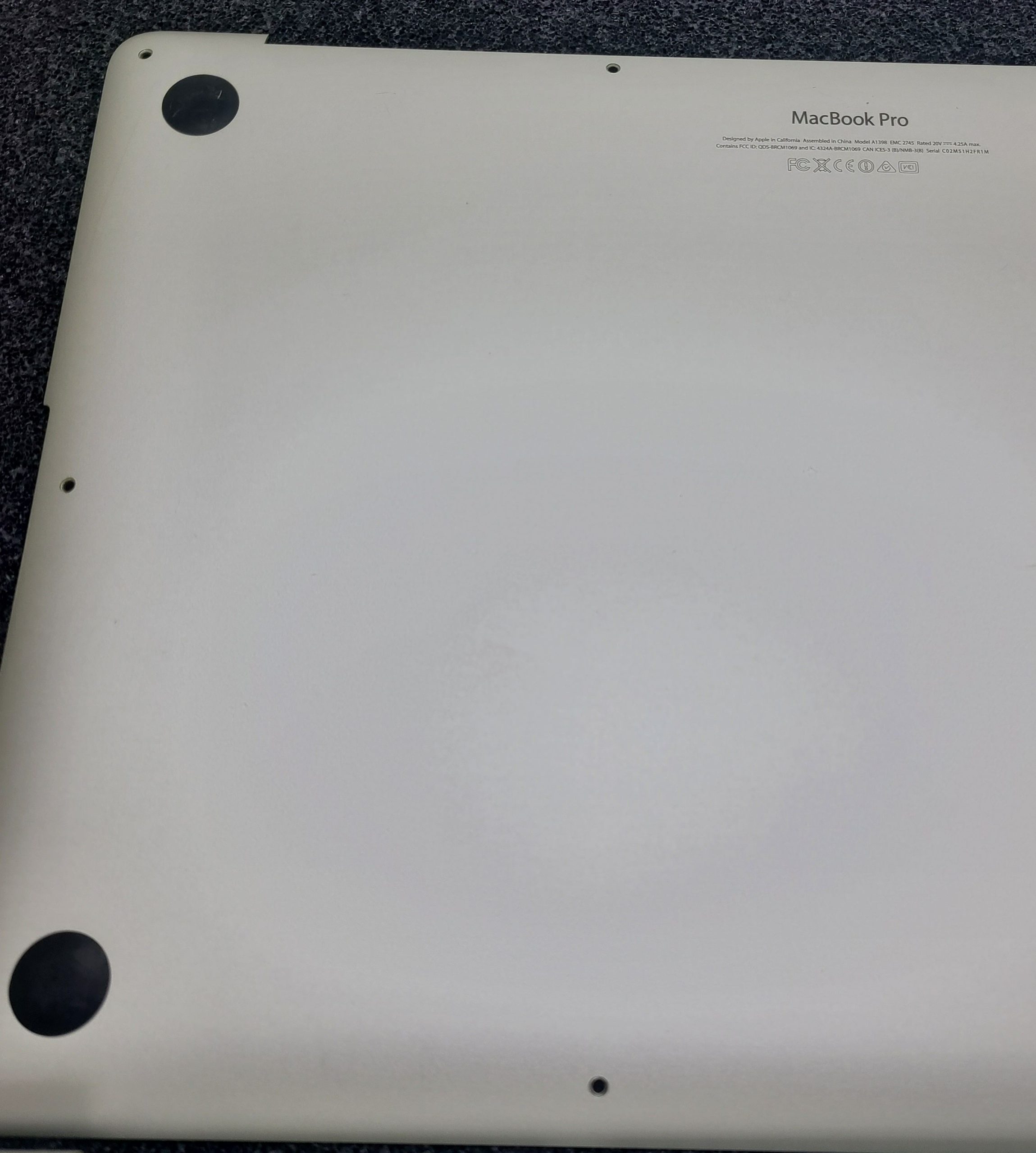 Grade B Original Apple MacBook Pro 15″ A1398 Late 2013/Mid 2014 Top Case Keyboard, Original Battery (Cycle Load 113, Battery Hold 97%) , TrackPad, Speakers, Bottom Cover, I/O Board, Bottom Cover Screws. Back cover has dents, All keys & Trackpad TESTED. Grade B
