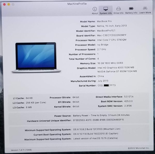 | Notes | w/ Discrete GPU NVidia GT 650M 1GB. Tested & Removed from working computer, 100% working guaranteed. |