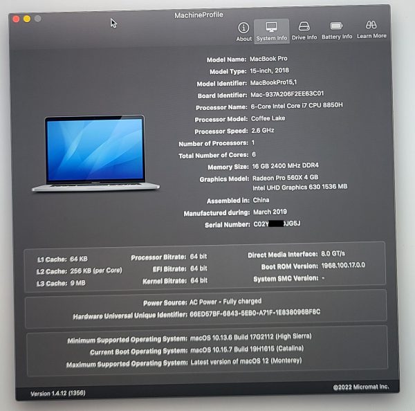 | Notes | Touch ID not Included. No MDM Remote Management Profile, EFI Password, and DEP. |