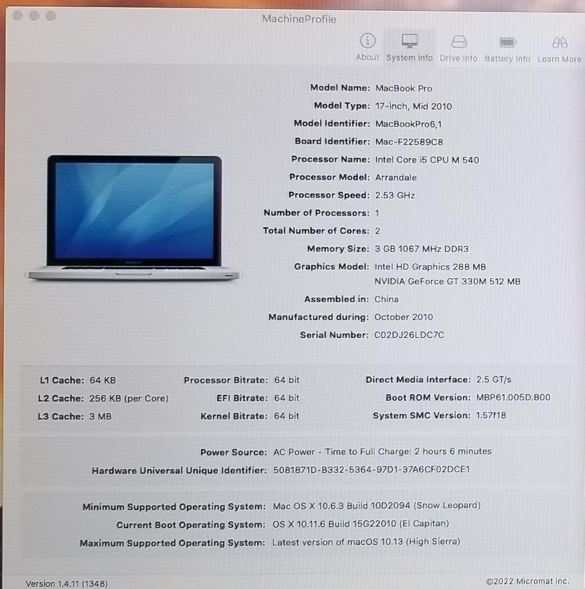 MacBook Pro 17 A1297 2010 i5 2.53GHz Logic Board GT 330M 512MB 820-2849-A TESTED