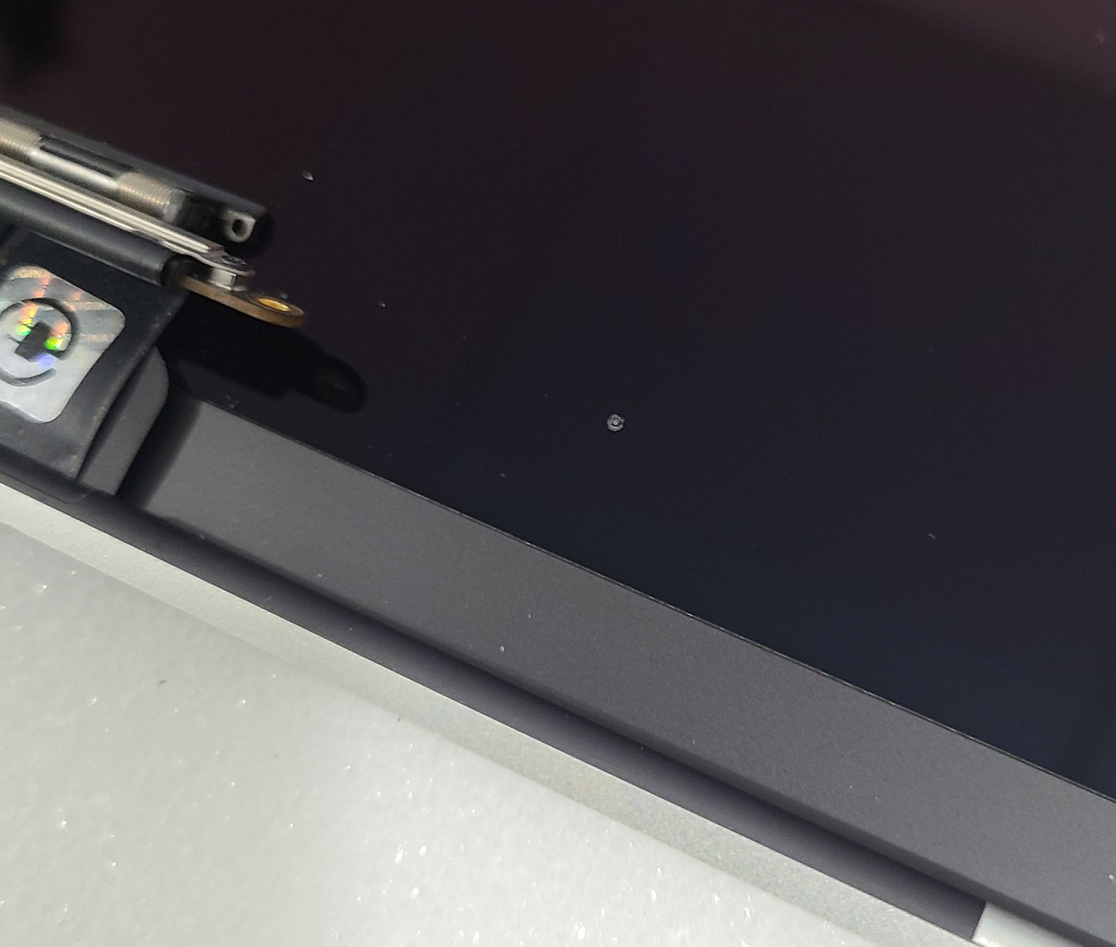 The display with no cracks, discoloration, hotspots, or dead pixels. Has scratches, nicks, scuffs, keyboard marks. Photo are Real