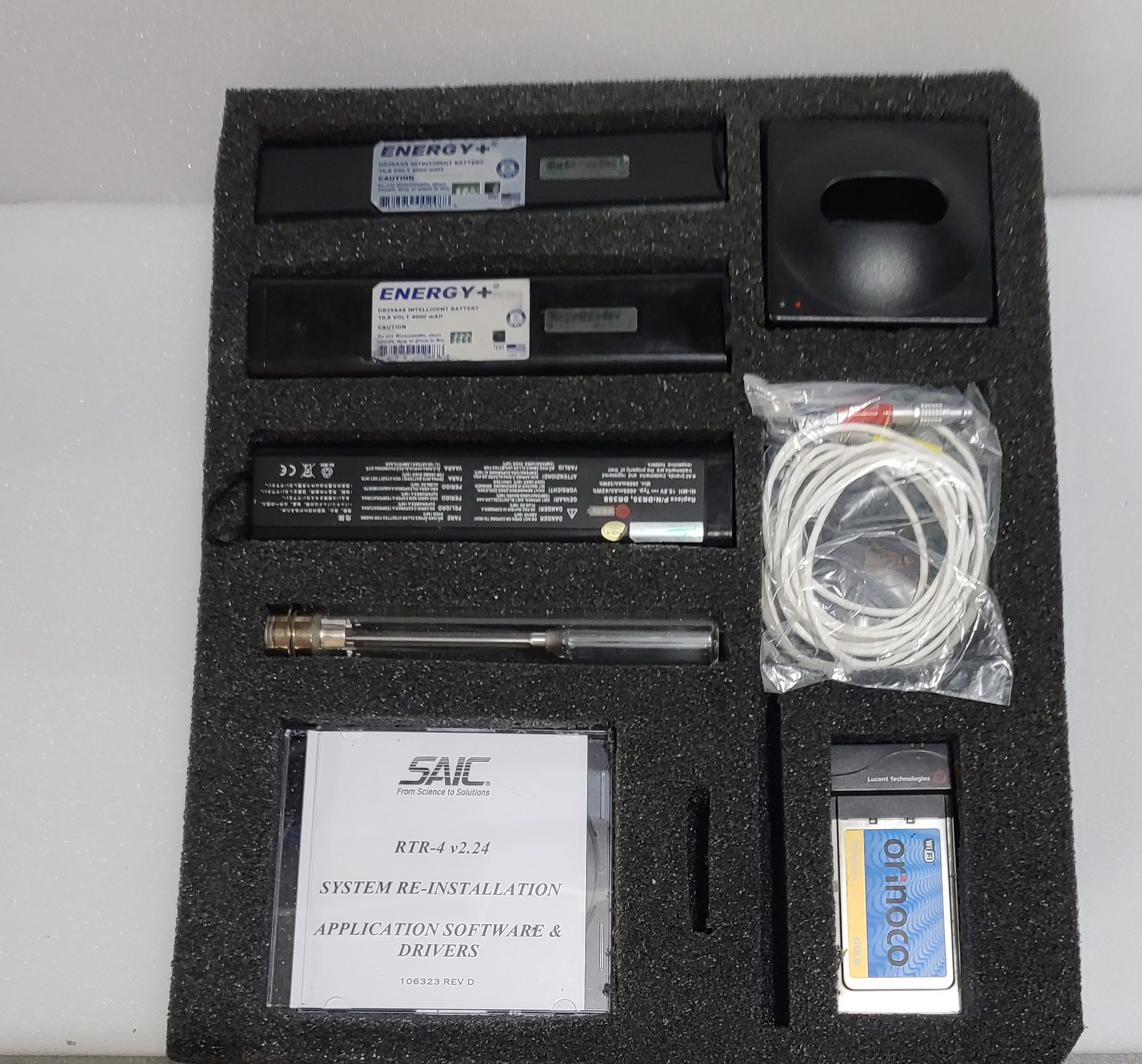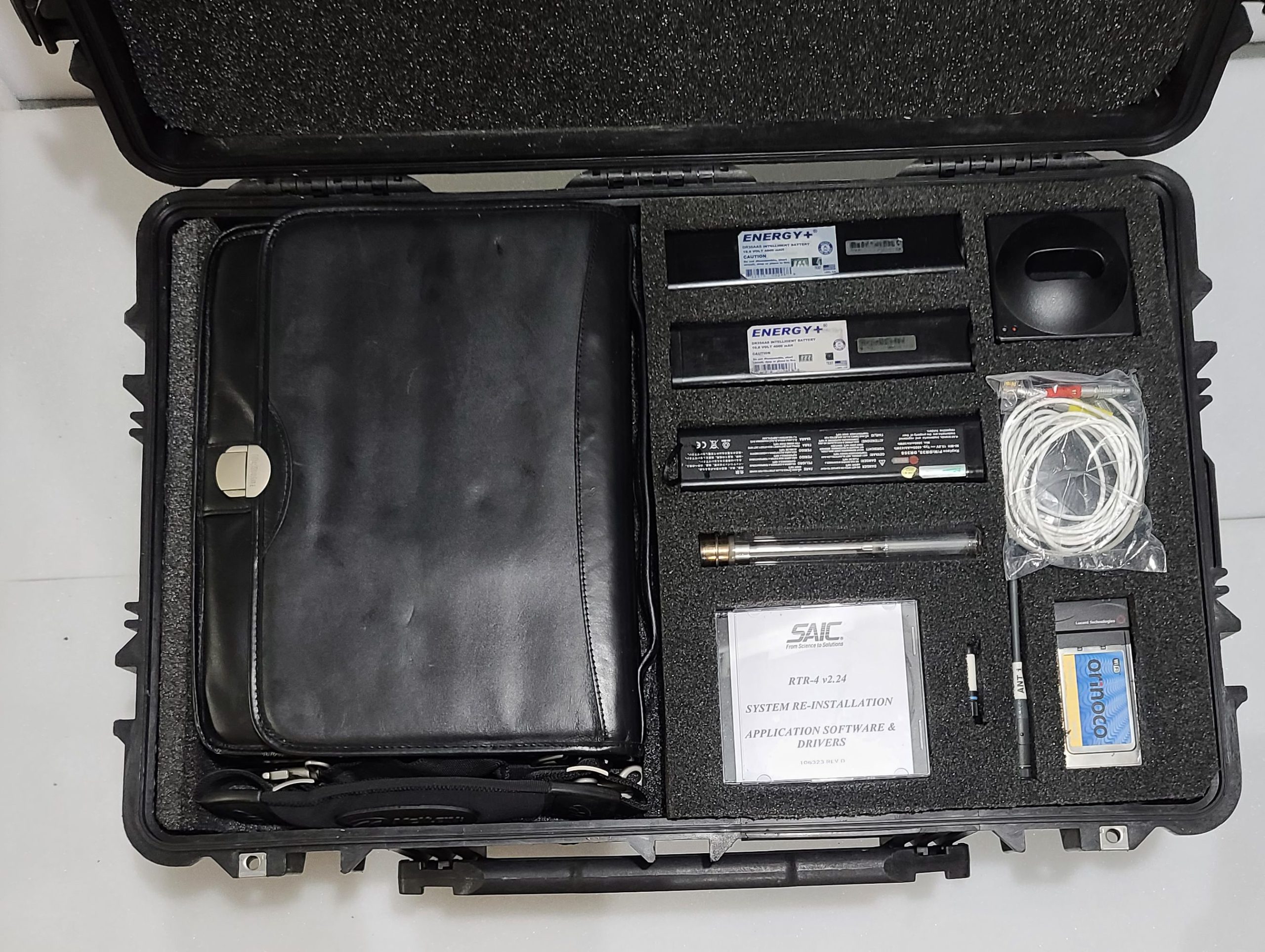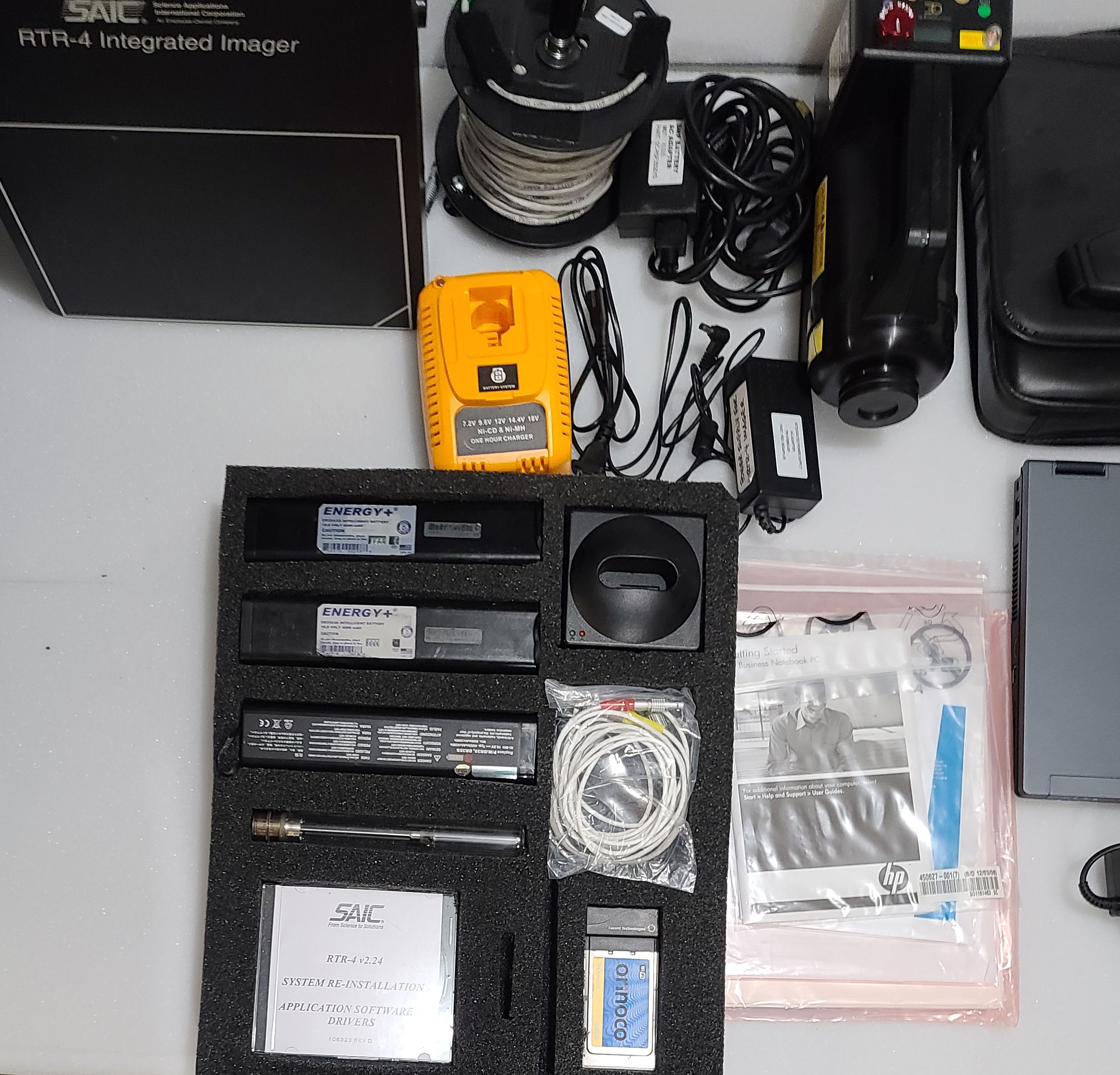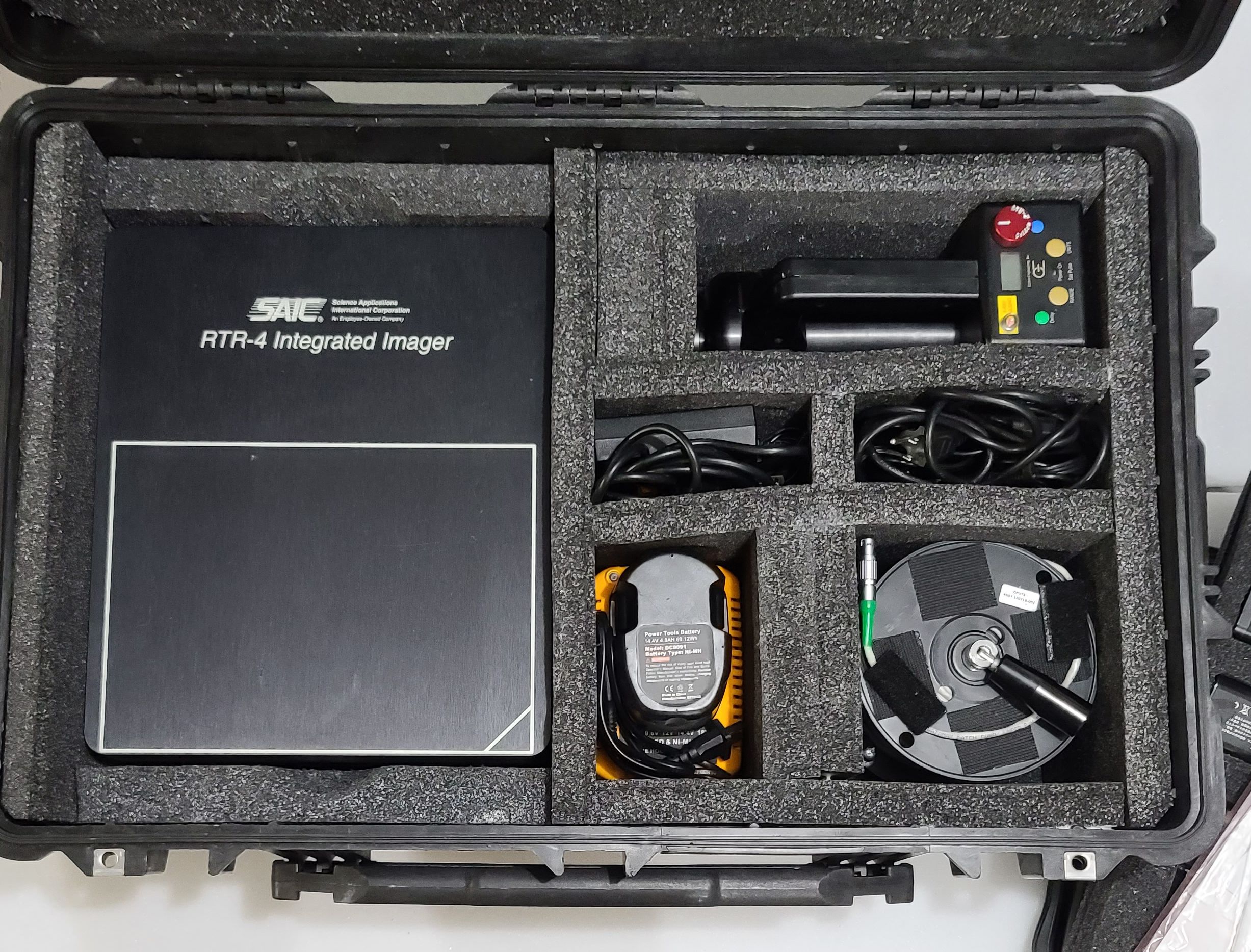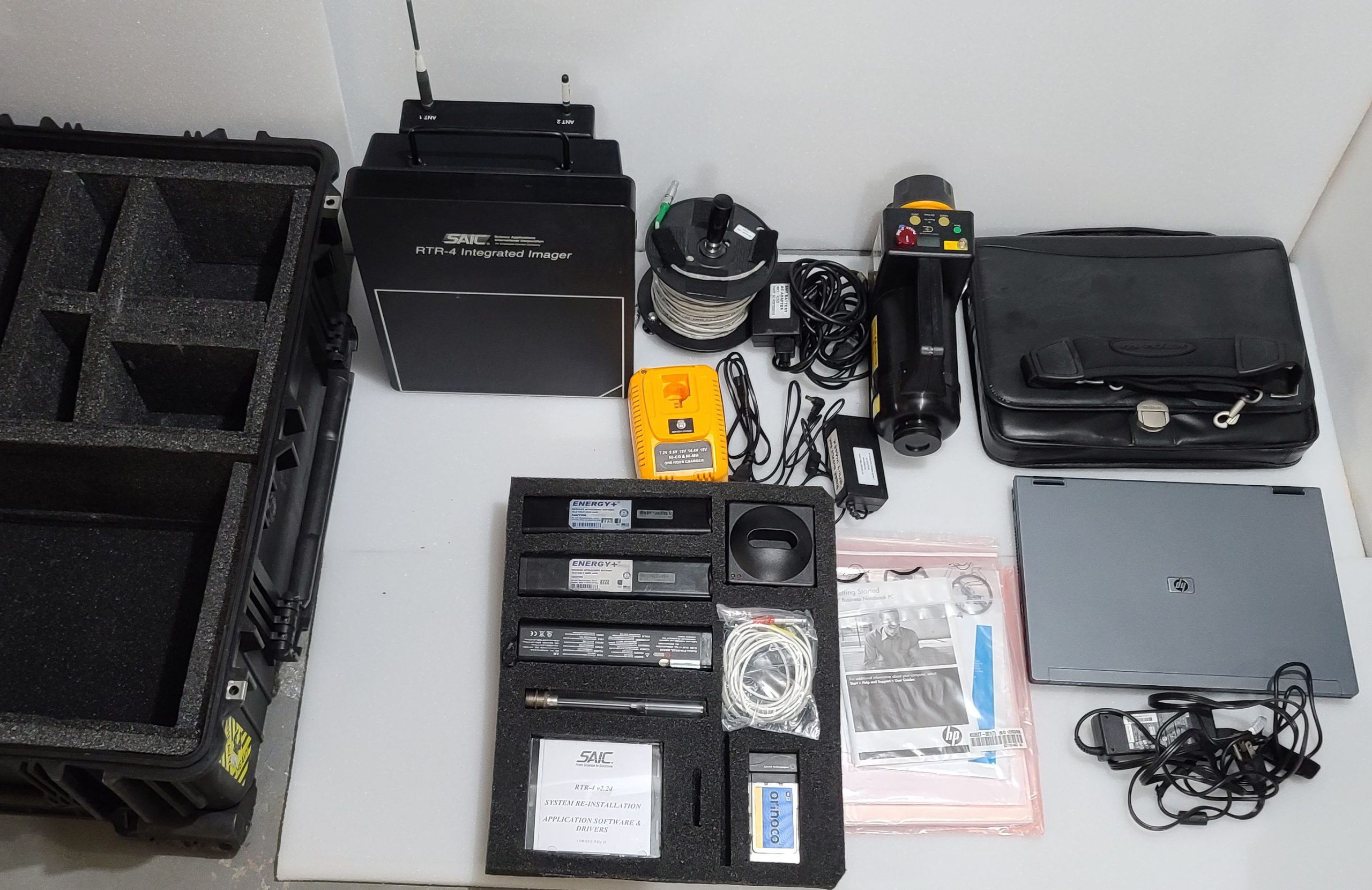 This SAIC RTR-4 System is in good condition and great working order. It includes the standard components for wired connectivity as well as the optional Wireless Kit and a new additional x-ray tube. There are some scratches and scuffs on the components that you would expect of a kit used out in the field. The system comes in Pelican case. This system was purchased for more than $25,000 and the optional Wireless kit was an additional $4,000. The following items are included in the sale: