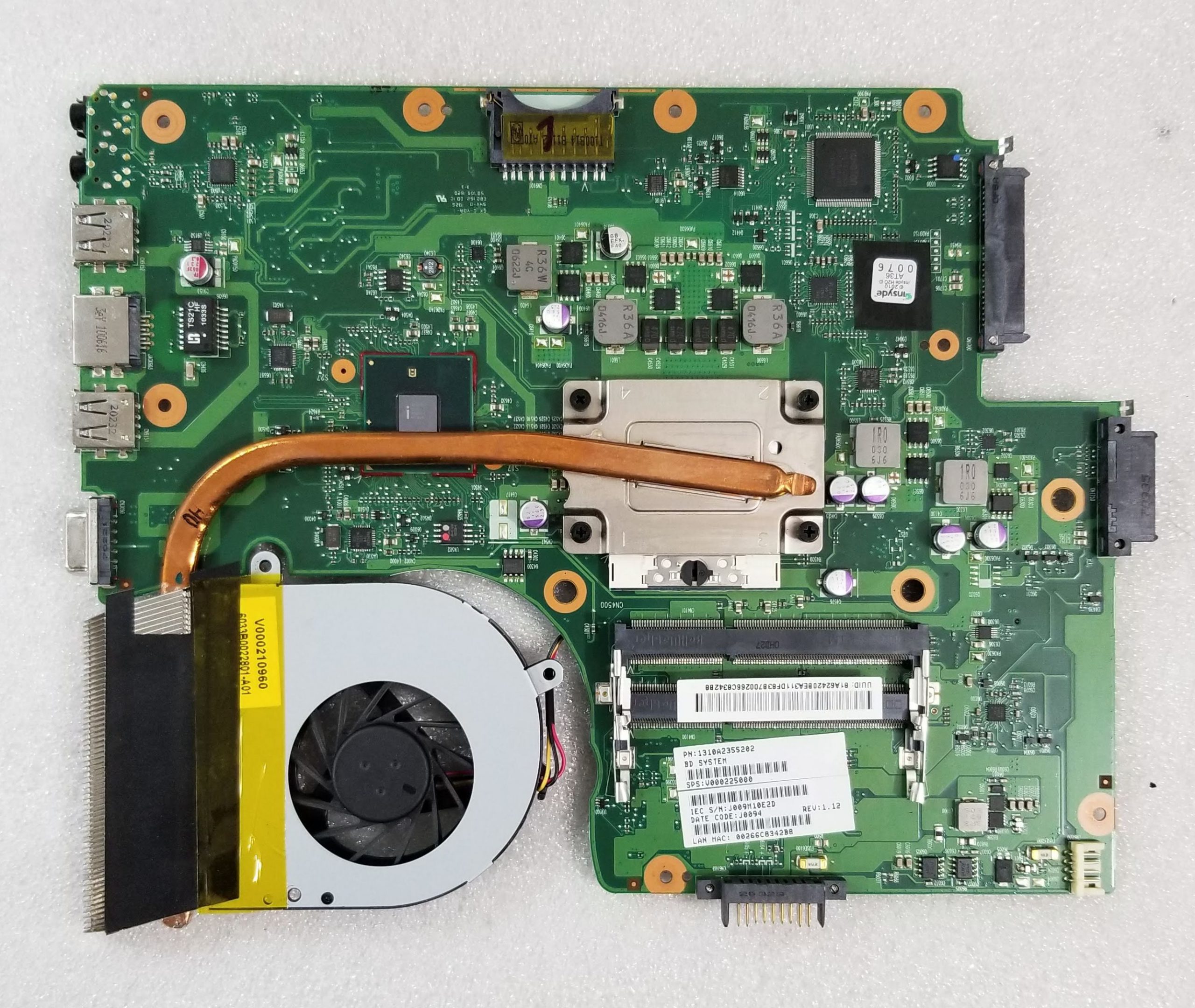 Toshiba Satellite C655D-S5113 Intel Laptop Motherboard 6050A2355201 w/ CPU Intel Pentium P6100 2.0GHz & Heatsink & Fan. TESTED