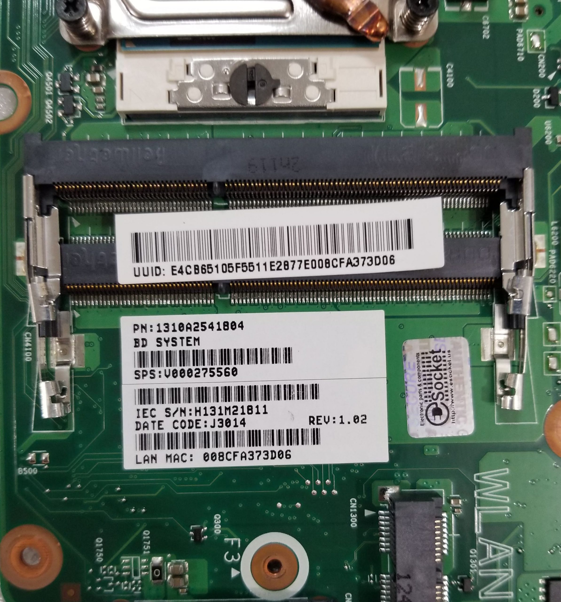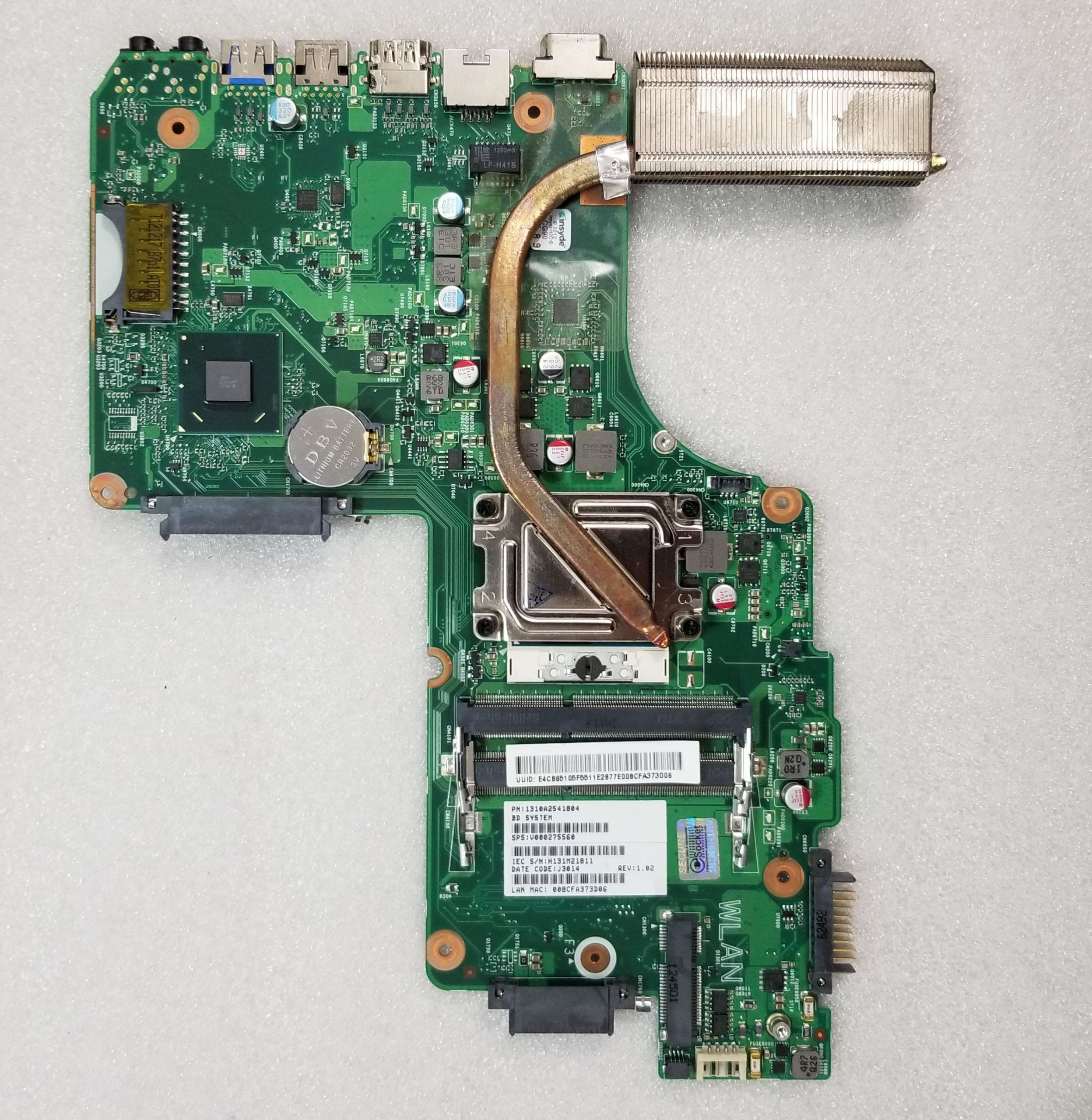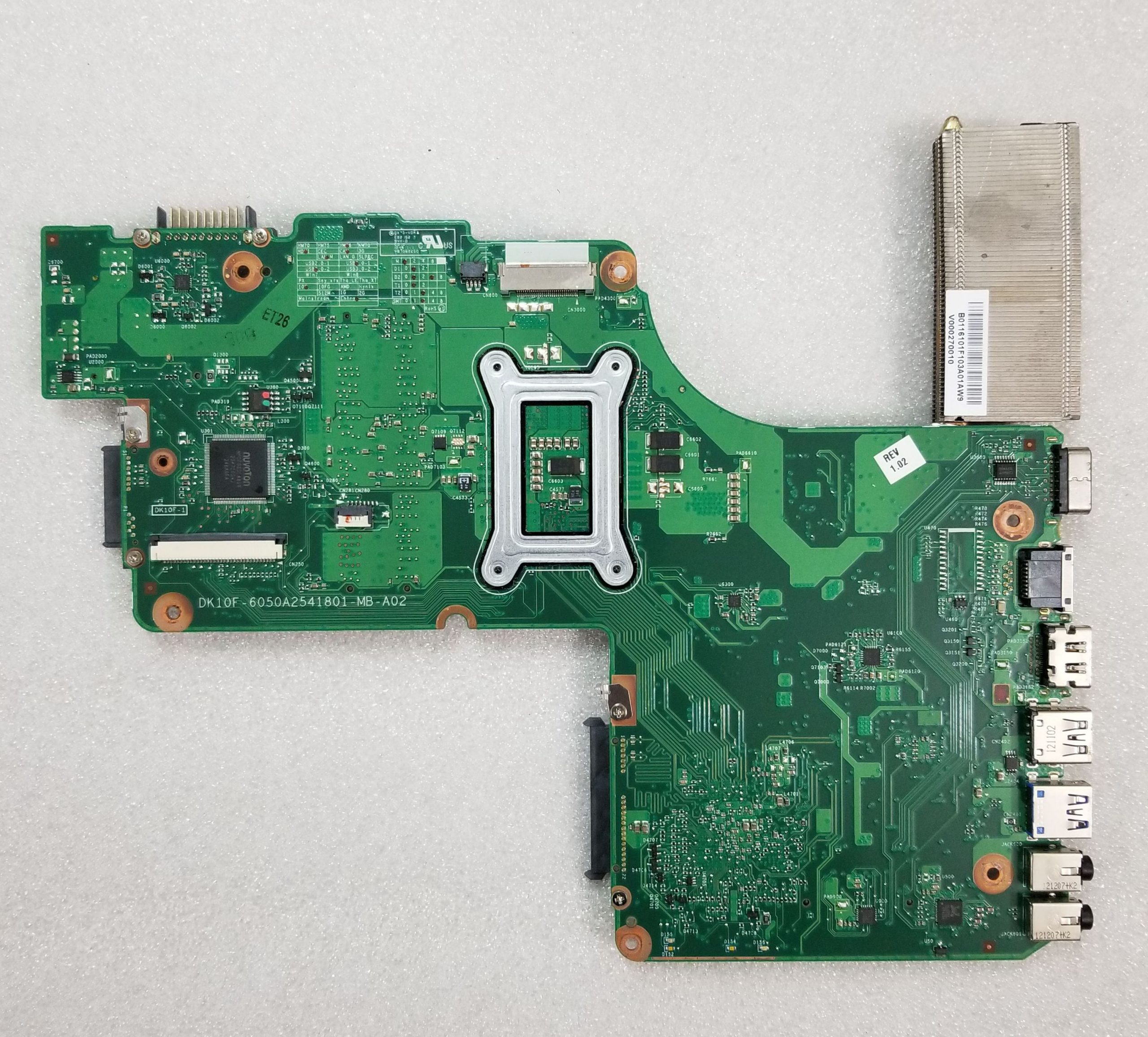 Toshiba Satellite C850 C855 PSCBLU HM70 Motherboard V000275560 6050A2541801-MB-A02 w/ CPU Intel i3-3120M 2.5GHz & Heatsink, P/N 1310A2541804. TESTED