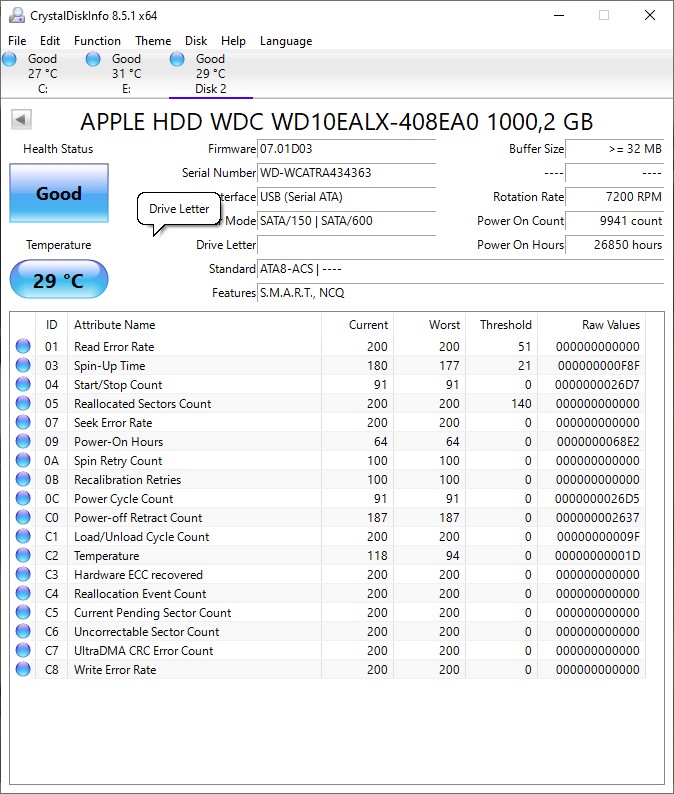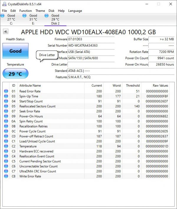 WD WD10EALX-408EA0 1TB 7200RPM 3Gbps SATA 3.5″ Hard Drive 655-1567G. Apple Mac OS Format