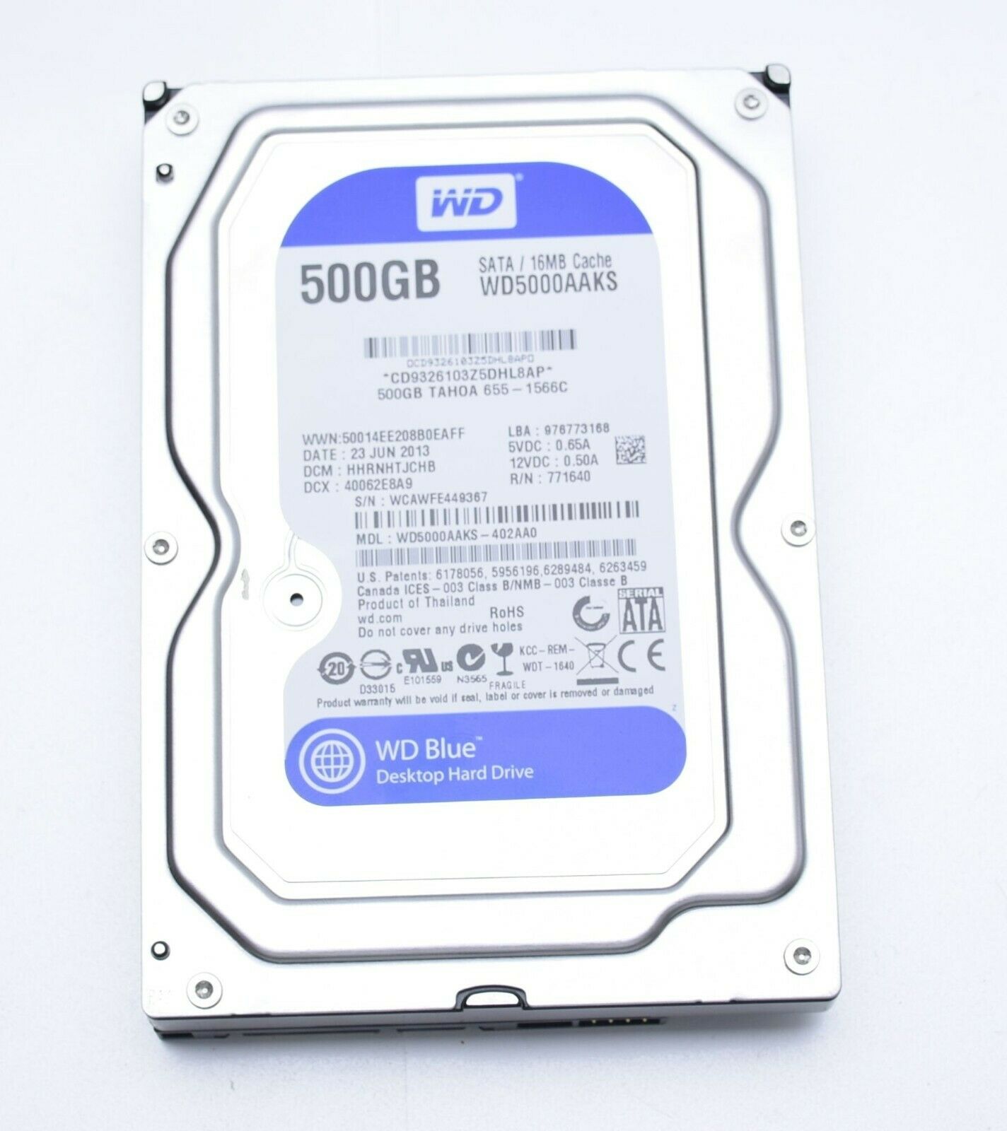 Western Digital 500GB, Internal, 7200 RPM, 3.5inch (WD5000AAKX) Hard Drive.